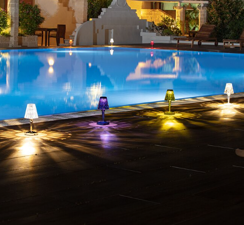 La sua forma essenziale e lineare si adatta facilmente a qualsiasi stile di arredamento, dall' area living all'ufficio, ottima anche per arredare il giardino o la terrazza. Mentre il colore trasparente permette alla luce di diffondersi in modo uniforme e delicato, creando un'atmosfera accogliente e rilassante.