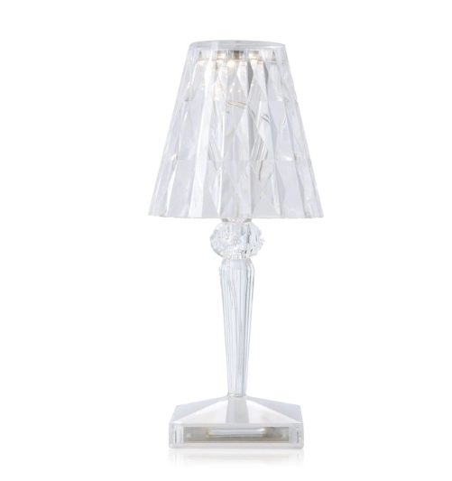 La lampada da tavolo Battery Trasparente di Kartell è dotata di una batteria ricaricabile, che la rende completamente wireless e facile da spostare in diverse zone della casa senza dover preoccuparsi dei cavi.