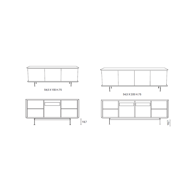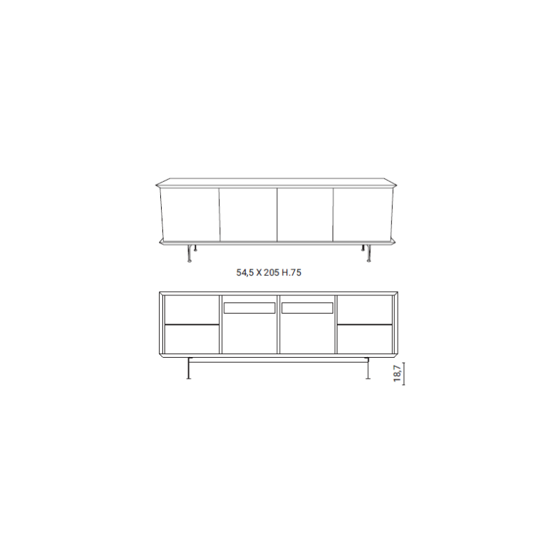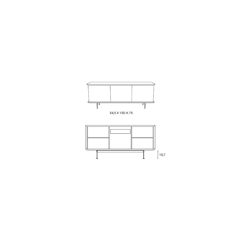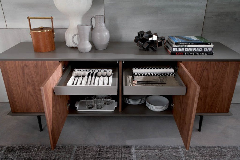 Brera è una madia con contenitore in laccato, ante e fianchi in laccato od essenza, disponibili in diverse colorazioni.