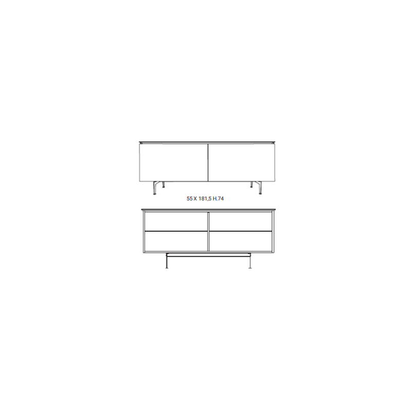 Questa madia presenta delle finiture interne in laccato ardesia, contiene due ripiani interni in cristallo ed è sorretta da piedini in metallo verniciato grafite opaco.