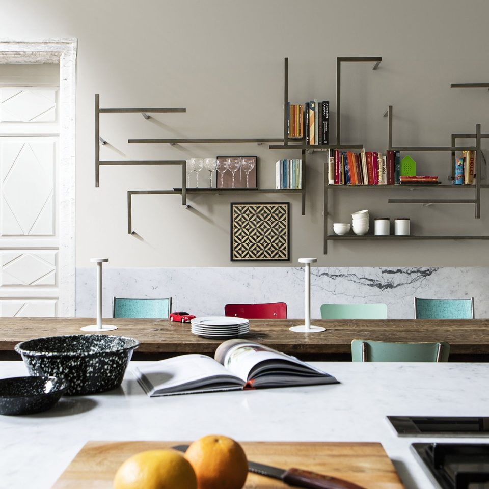 La parete attrezzata Antologia di Mogg è un elegante e moderno sistema di arredamento che combina funzionalità e design. Realizzata in metallo, si compone di diversi elementi come mensole, ripiani, contenitori, ante e vani a giorno, che permettono di organizzare ed esporre oggetti e libri in modo ordinato e gradevole.