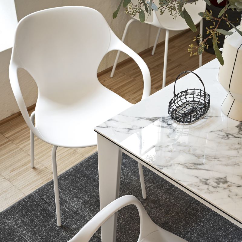 La produzione si sviluppa in tavoli e sedie portati ai massimi livelli di profondità di gamma, in grado di soddisfare ampie richieste di mercato.