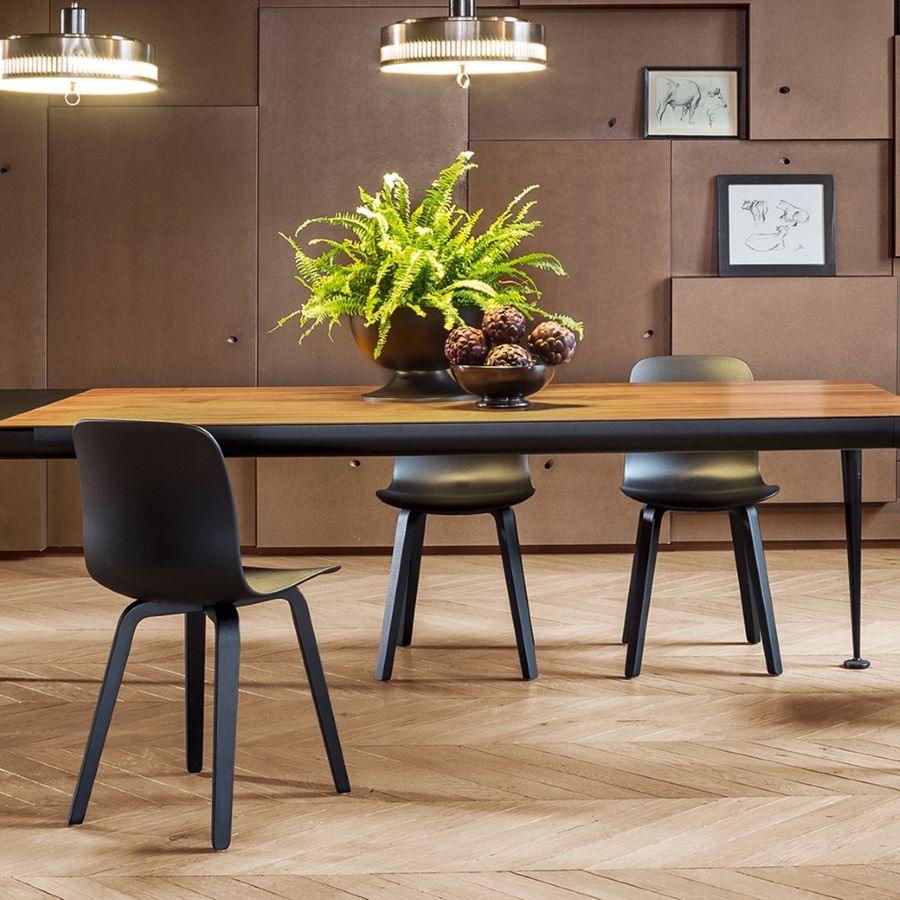 La sedia Substance di Magis è caratterizzata da una struttura in multistrato di frassino, disponibile in finitura naturale o tinto nero, mentre la seduta è realizzata in polipropilene. Questa combinazione di materiali garantisce leggerezza e resistenza, rendendo la sedia adatta sia per l'uso domestico che per ambienti contract.