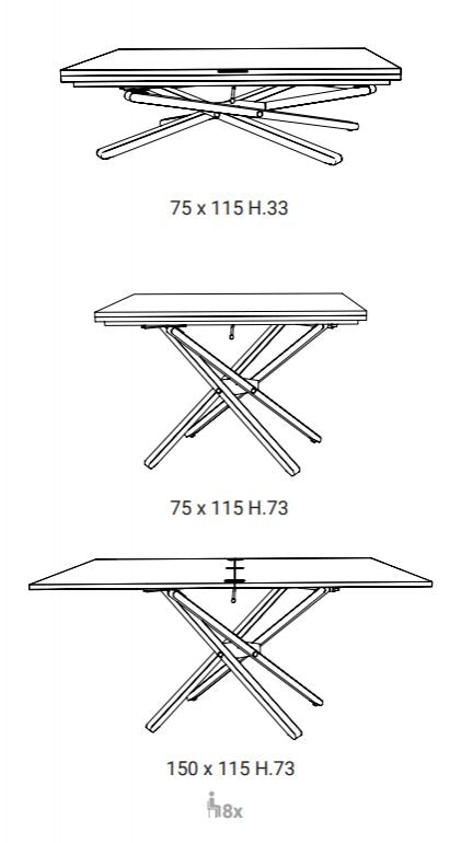 Il tavolino trasformabile Shazam di Easyline è un elegante prodotto di arredamento dal design funzionale. Realizzato con materiali di alta qualità, questo tavolino si trasforma facilmente da tavolino basso a tavolo da pranzo, grazie al suo sistema di allungamento e sollevamento.