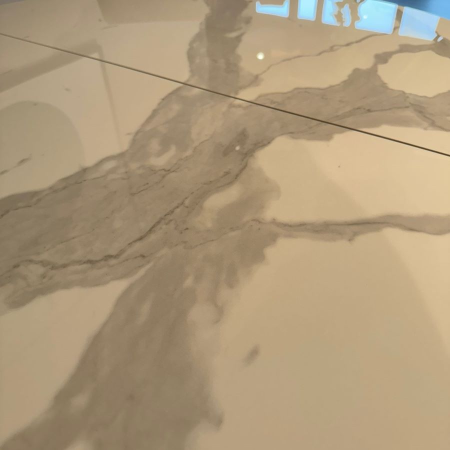 - Piano e allunga: Marble glass Calacatta gold lucido e allunga in nobilitato