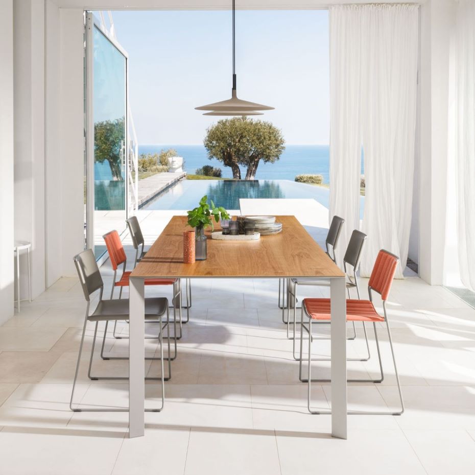 Il piano del tavolo Akashi di Midj è disponibile in diverse finiture, come vetro temperato, laminato o ceramica, che conferiscono al tavolo un tocco di raffinatezza e permettono di personalizzarlo secondo i propri gusti. La base è disponibile in diverse finiture e può essere scelta tra diverse forme e colori.