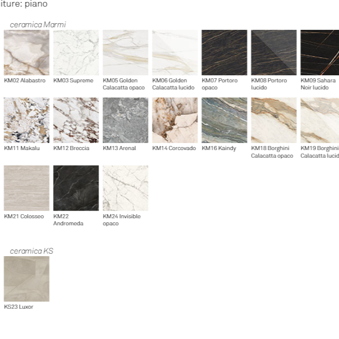 Specificare nelle note dell'ordine la finitura scelta per il piano in ceramica!