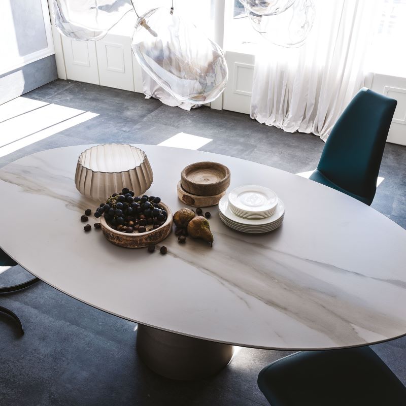 La finitura in ceramica conferisce al tavolo un aspetto lussuoso e raffinato, mentre la forma permette di creare un'atmosfera accogliente. Il tavolo Yoda Keramik di Cattelan Italia è disponibile in diverse dimensioni e finiture, per adattarsi al meglio alle esigenze e allo stile di ogni ambiente.