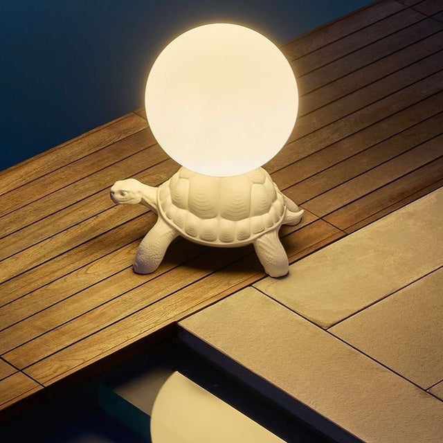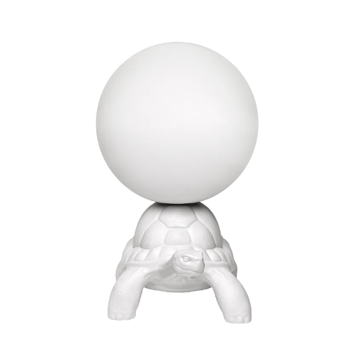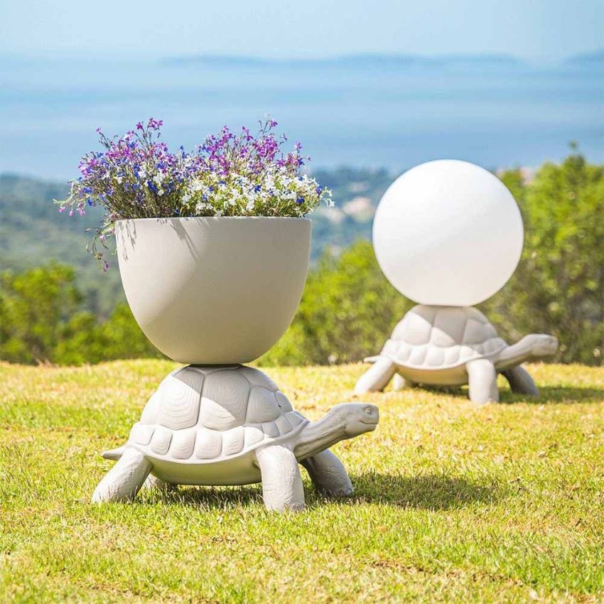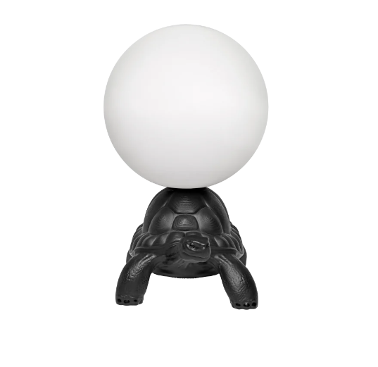 La Turtle Carry Lamp di Qeeboo è una lampada in polietilene che raffigura una tartaruga con al di sopra una sfera luminosa che emette luce led bianca, inoltre è dotata di una batteria ricaricabile.