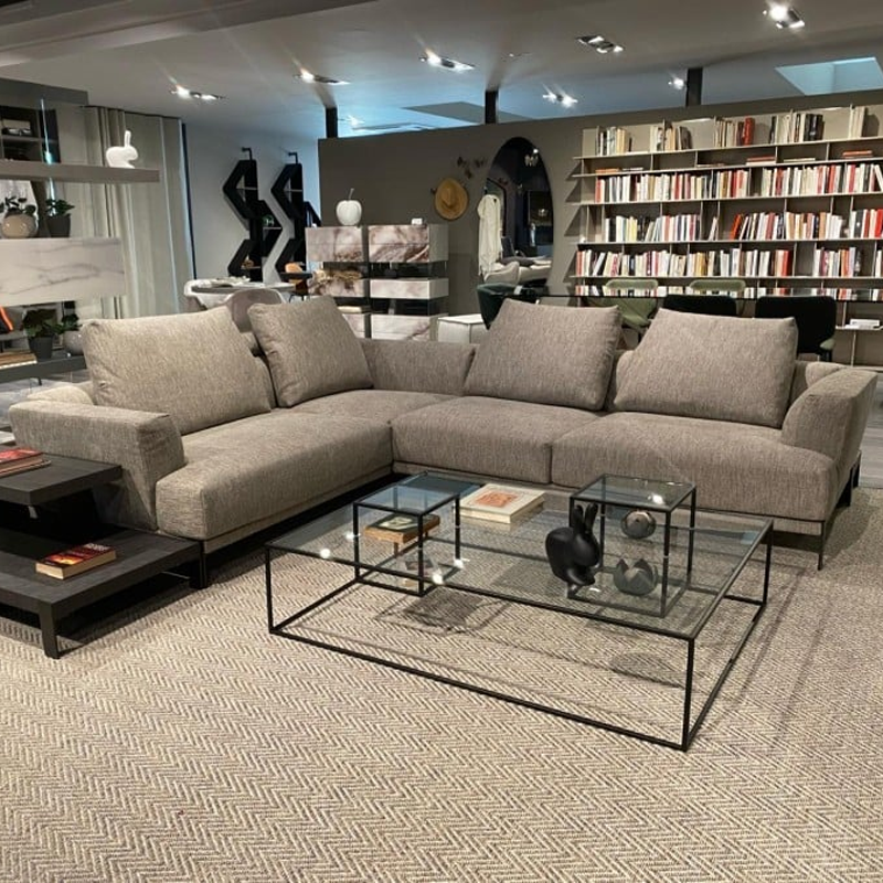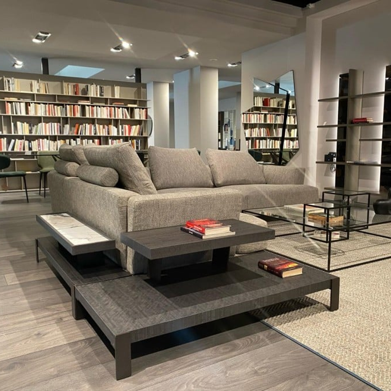 Le piattaforme autonome, sia rigide che morbide, si combinano le une con le altre in composizioni che potrebbero estendersi quasi in ogni direzione, per andare a soddisfare i vari bisogni della vita domestica. I complementi, dal disegno atemporale, si ispirano a valori artigianali, combinando essenze e marmi, creando giustapposizioni disinvolte. Questi elementi, accostabili tra loro e integrabili alle componenti imbottite, ispirano un libero gioco di creatività architettonica che ne rafforza l'effetto di articolata linearità. Le dolci volumetrie dei braccioli e dello schienale si espandono leggermente verso l'esterno, conferendo un senso di gradevole accoglienza.