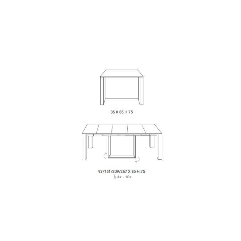 Dimensioni: 85×35/93/151/209/267 H 75 cm