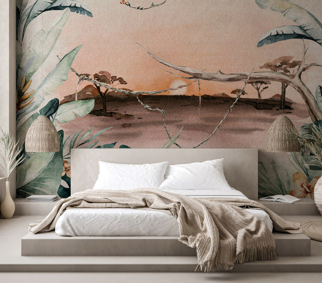 Con la carta da parati Sunshine di Instabilelab ti immergerai in un ambiente naturale con un caldo tramonto che farà da sfondo ai tuoi momenti!