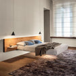 Nel nostro showroom troverai il letto fluttua di Lago con testiera in tessuto Axum col.12 grigio. Completano la composizione due comodini caratterizzati da cassetti asimmetrici con struttura laccata e frontali in vetro lucido di tre colorazioni diverse: bianco, mandorla e tortora. Per maggior atmosfera è presenta un sistema di illuminazione led sotto il letto.