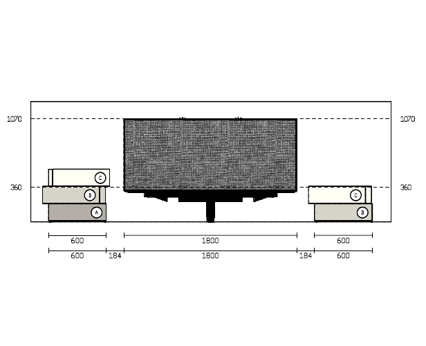 Dimensioni totali: L 336,8 P 208 H 107 cm