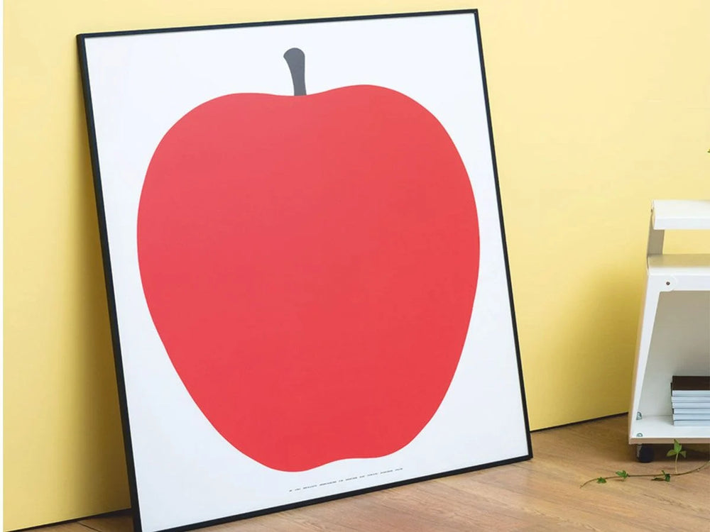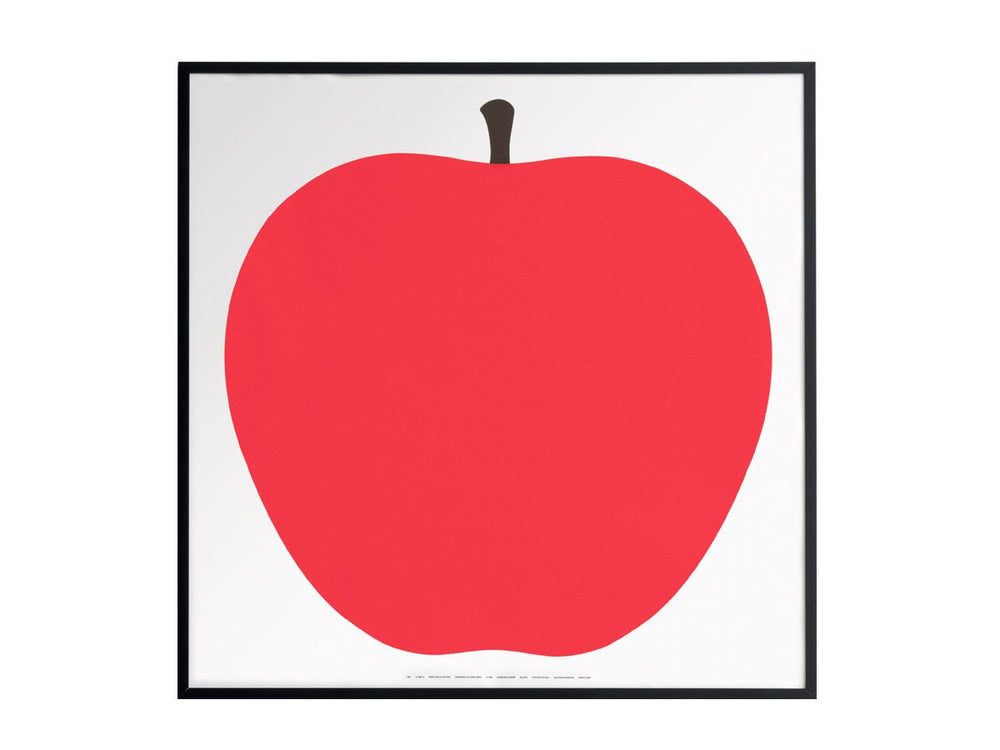 Di queste opere non esistono originali, perché l’immagine finale si ottiene solo attraverso i procedimenti tecnici di riproduzione (serigrafia) Mari sembra cercare attraverso la scelta di questi soggetti ‘archetipi’, la forma e la tecnica della loro rappresentazione una sorta di ‘super-icona’: la Mela non è una mela ma La Mela.