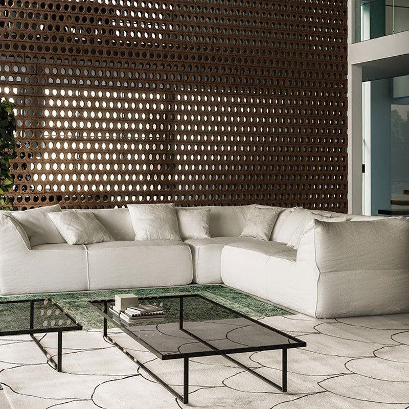 La struttura del divano modulare Eden di Pianca è solida e resistente, garantendo comfort. Le varie combinazioni di moduli disponibili permettono di personalizzare il divano in base alle proprie esigenze di spazio e gusto estetico.