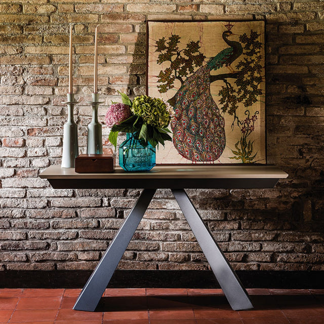 In equilibrio tra design e funzionalità, la consolle allungabile Convivium di Cattelan Italia si presenta con raffinatezza ed eleganza di forme, anche leggera all'occhio, l'ideale per abbellire ingressi o corridoi e, all'occorrenza, trasformarsi in un vero e proprio tavolo da pranzo.