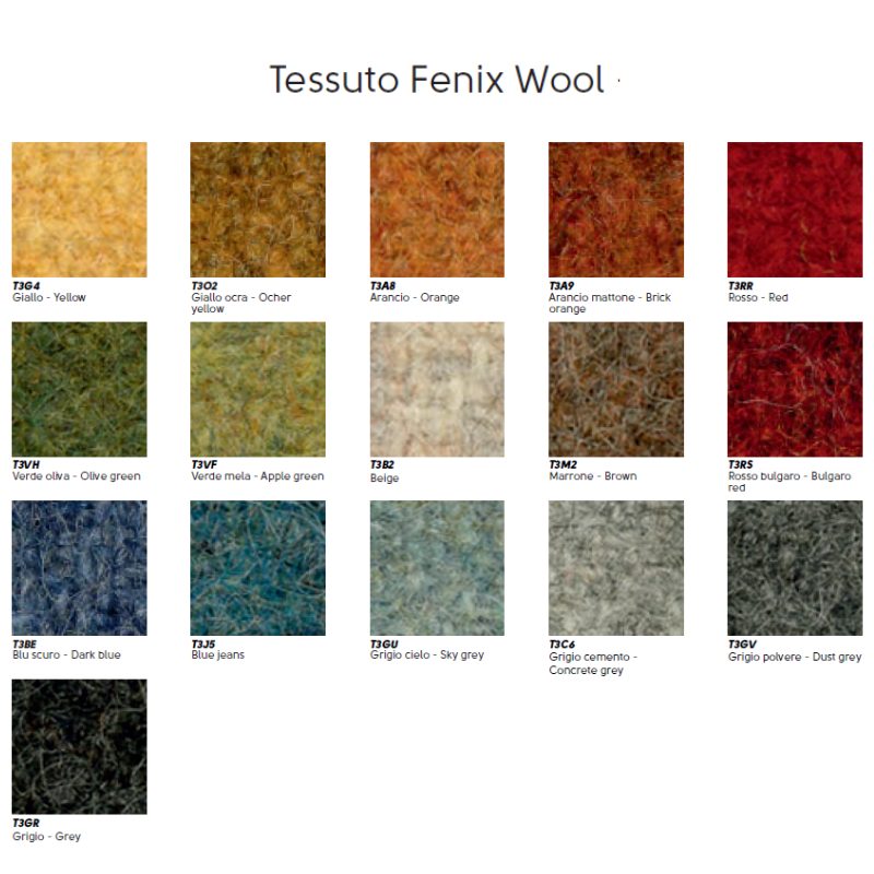 - Rivestimento: Tessuto Visual – Tessuto Fenix Wool – Tessuto Flame – Tessuto Network – Tessuto Ouche- Tessuto Plain