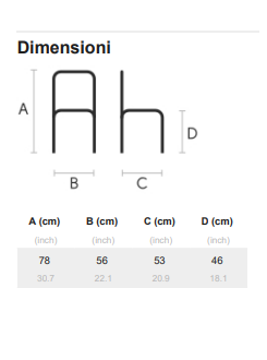 - Dimensioni: H 78 cm; L 56 cm; P 53 cm; HS 46 cm;