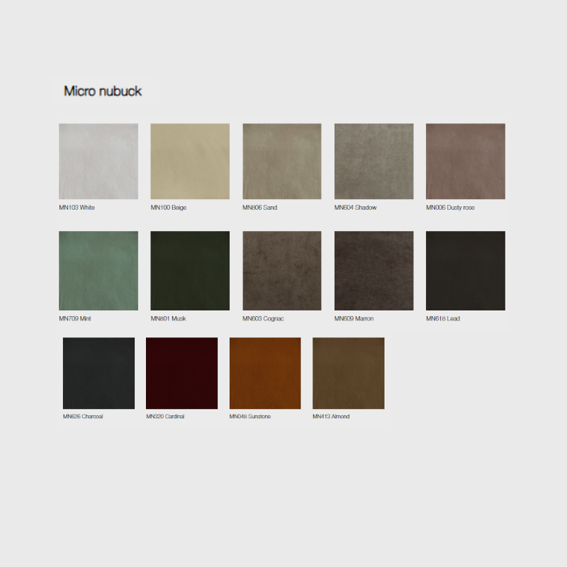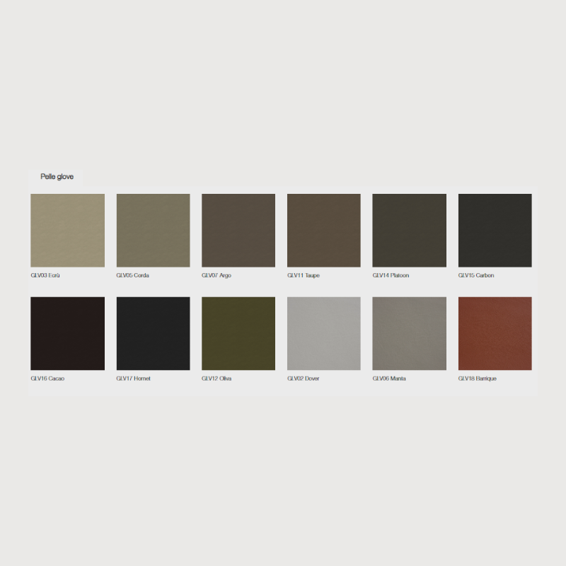 La seduta è rivestita in diverse finiture, dalla pelle all'ecopelle. Non sfoderabile.