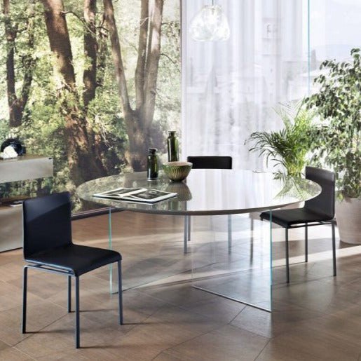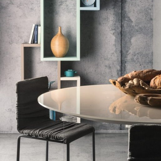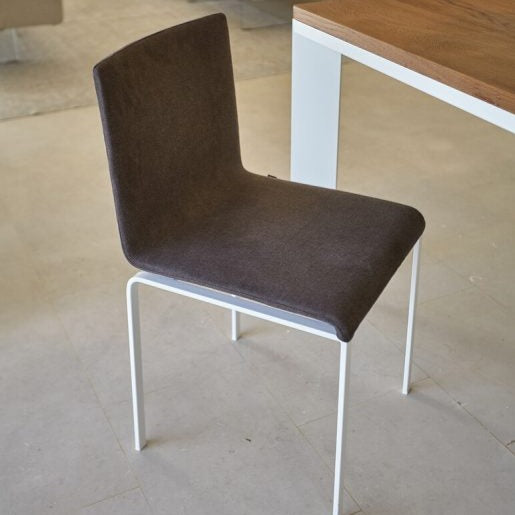 La struttura metallica sottile e affusolata è in grado di supportare il peso del corpo con solidità garantendo il massimo del comfort. Lo schienale è progettato per consentire una lieve flessione all'indietro che lo rende più ergonomico ed accogliente. Sono infiniti i materiali e i colori che puoi scegliere per personalizzare il prodotto.