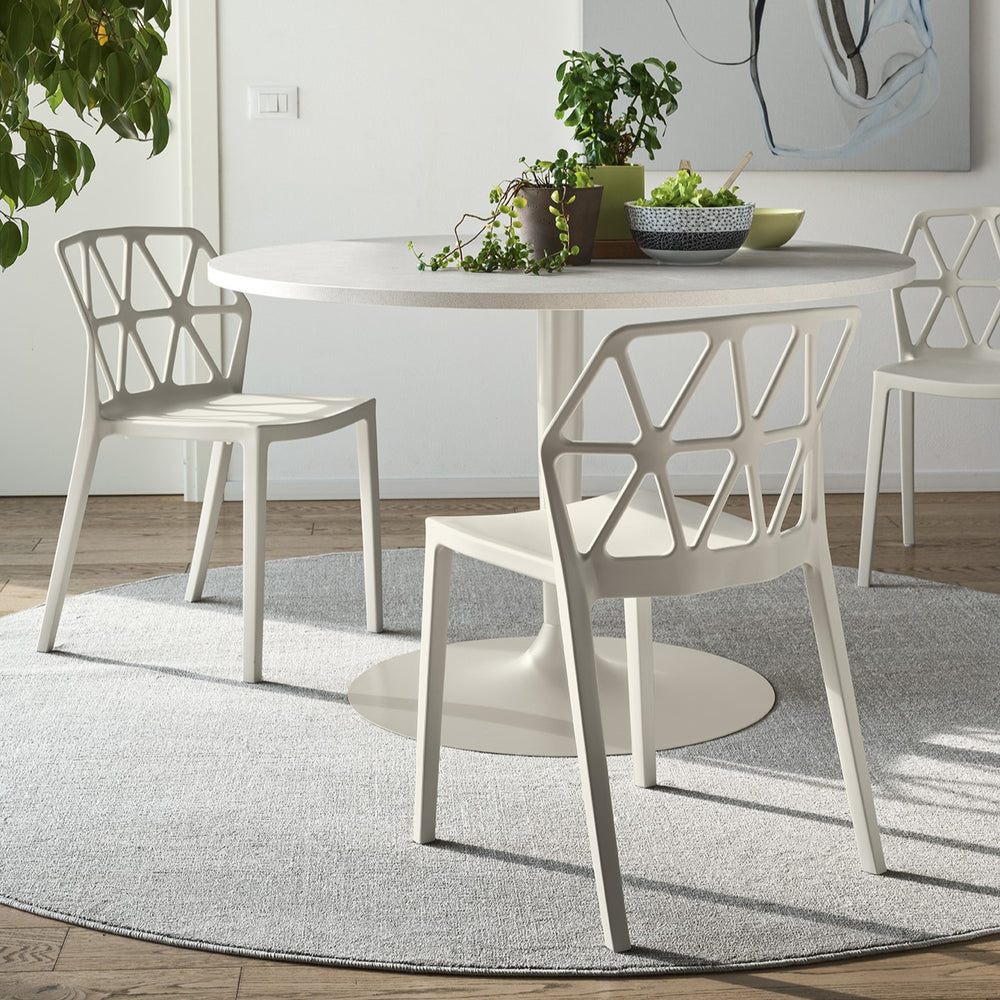 Interamente realizzata in polipropilene, materiale leggero e resistente, è perfetta anche per l'outdoor. La superficie opaca è disponibile in un'ampia gamma cromatica.
