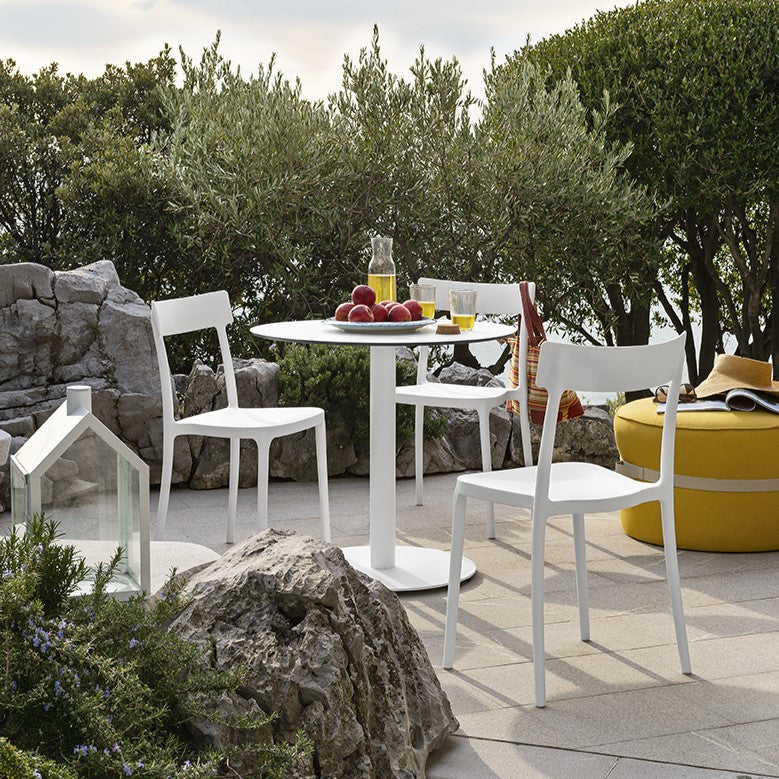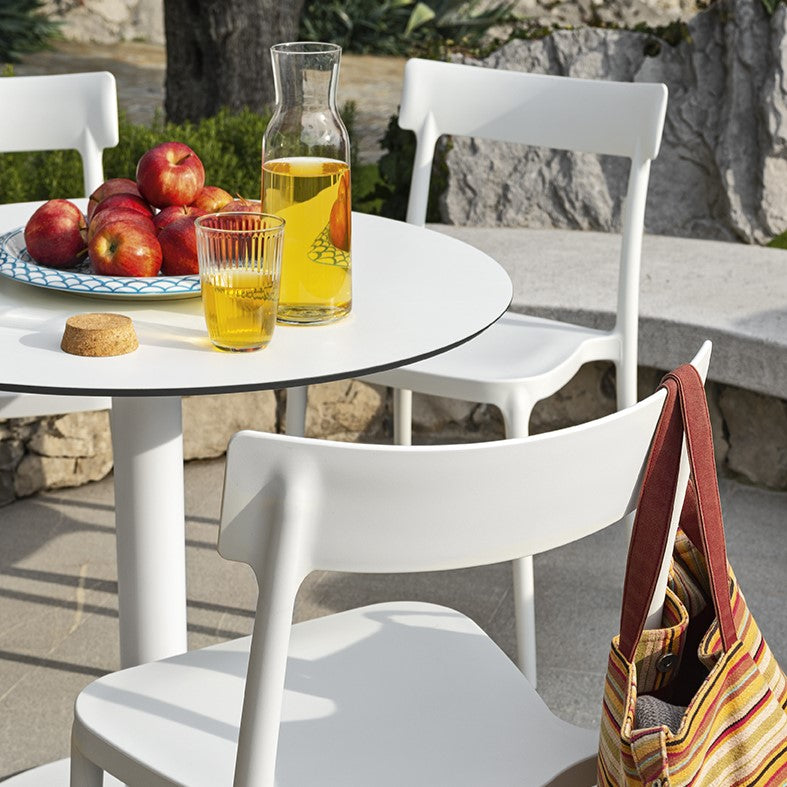 La sedia impilabile Argo è adatta sia ad un uso interno sia ad un uso esterno, essendo studiata e costruita per sopportare gli agenti atmosferici.