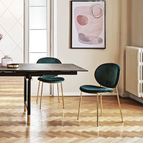 La sedia Inès di Calligaris è disponibile con seduta in velluto, ecopelle e molti altri materiali, contattaci per saperne di più.