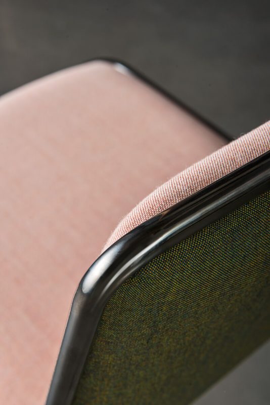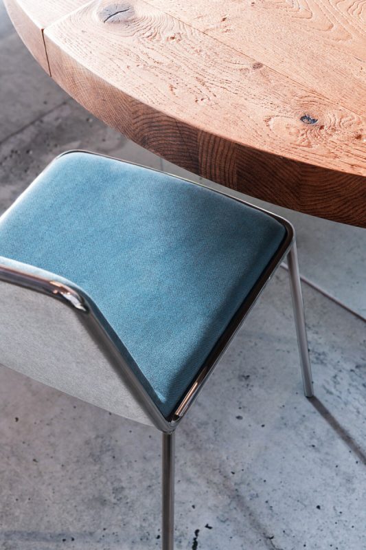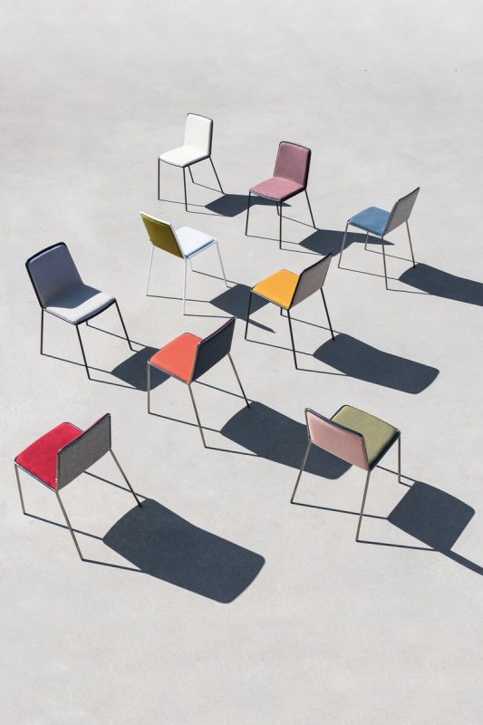Pletra di LAGO è una sedia imbottita, colorata ed essenziale.