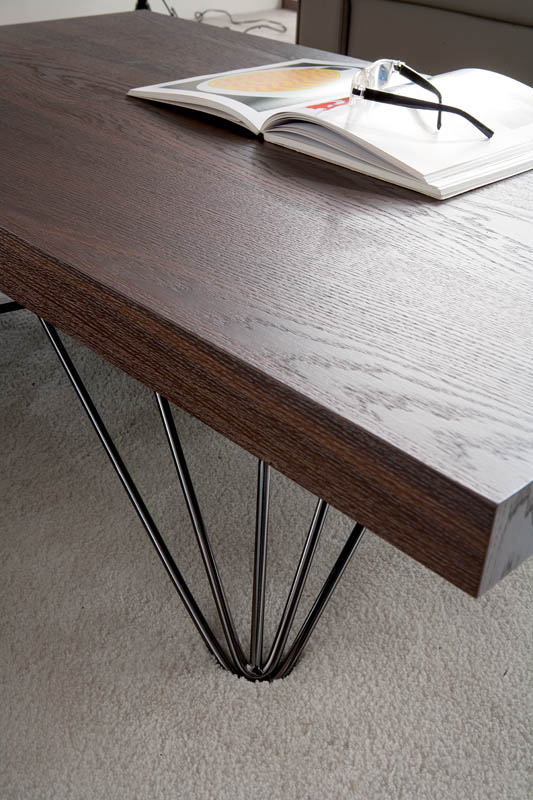 Radius è un tavolino elevabile con struttura in metallo e piano in molteplici finiture.