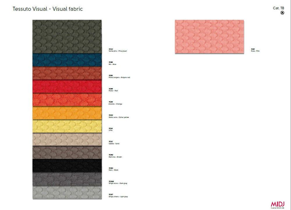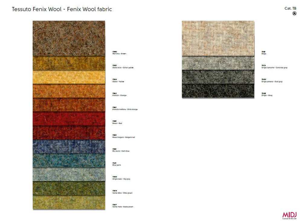 - rivestimenti: TESSUTO FENIX WOOL - TESSUTO VISUAL - TESSUTO NETWORK - TESSUTO UNIFORM MELANGE