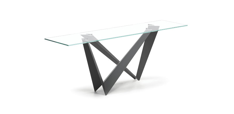 Prezzo riferito al prodotto nelle dimensioni Consolle Fissa Westin con struttura graphite e piano in cristallo trasparente.