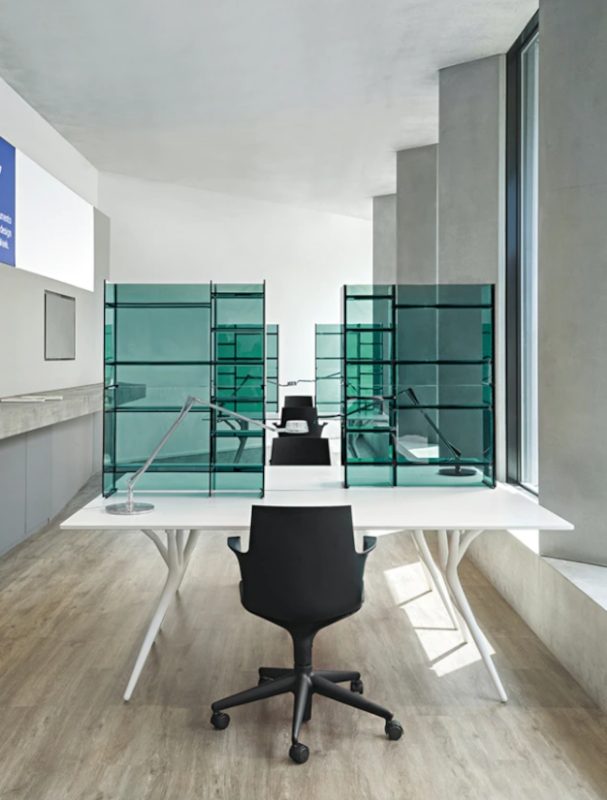 Aledin Tec di Kartell è una lampada da tavolo a led caratterizzata da una testa piatta, che permette di ottenere un fascio luminoso diretto e al contempo orientabile. Grazie appunto alla possibilità di movimento del diffusore stesso. Inoltre i due bracci snodati in policarbonato presentano due stecche in alluminio, che assolvono alla funzione di conduttori.