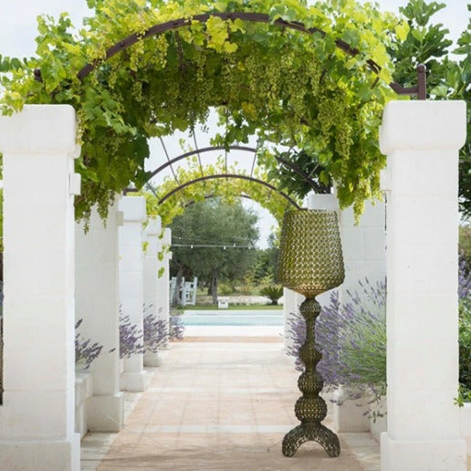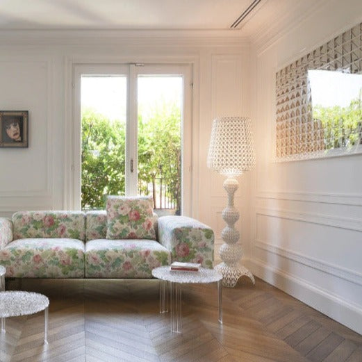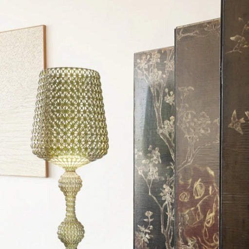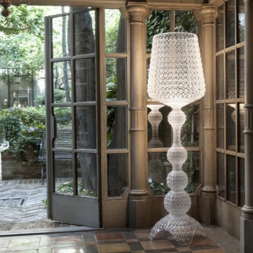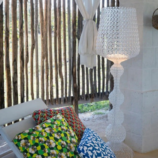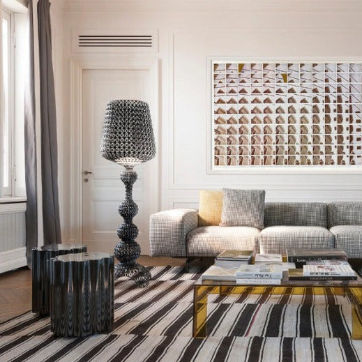 La lampada da terra Kabuki, disegnata da Ferruccio Laviani per Kartell, si propone come elegante e decorativo pezzo di design.