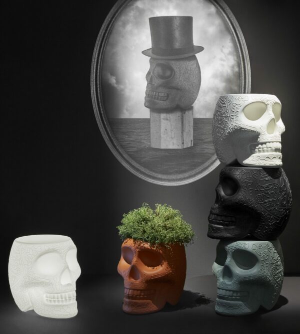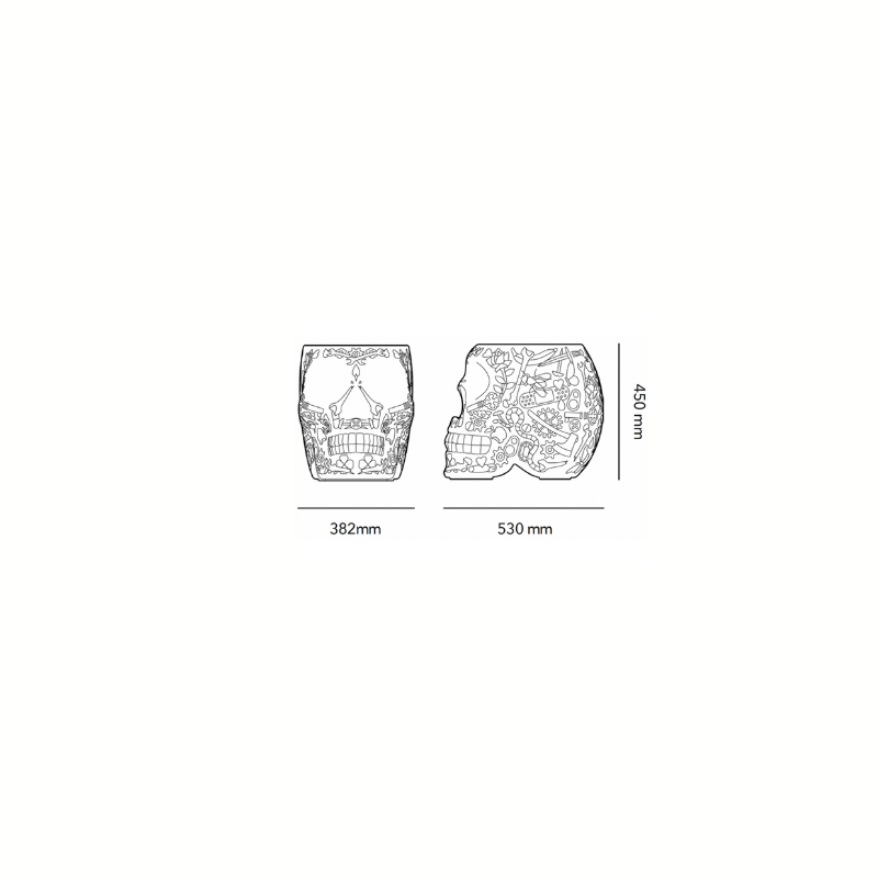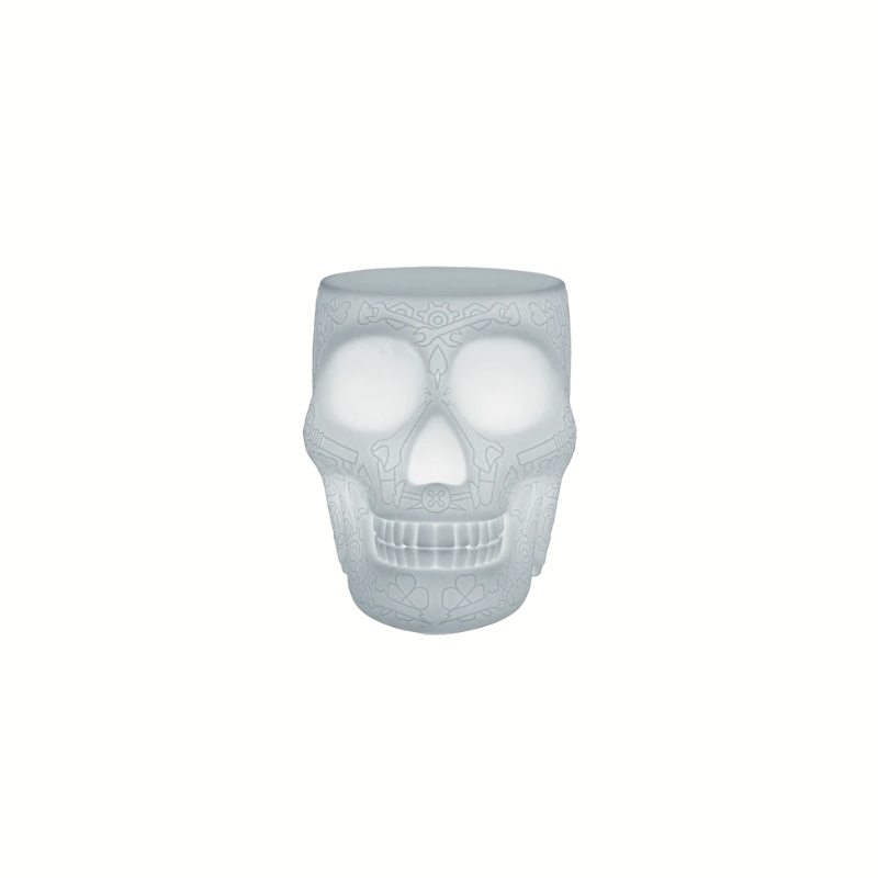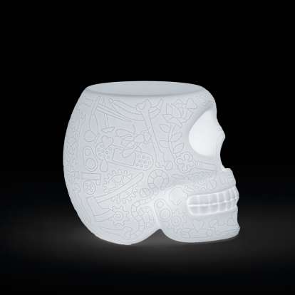 Lampada-sedia ricaricabile a forma di teschio per indoor ed outdoor.