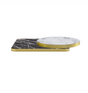 Scegli un piano tavolo in laminato lucido con profilo dorato per valorizzare il tuo ambiente con un elemento di forte impatto estetico e qualità garantita.