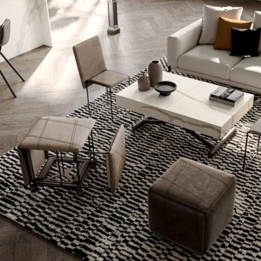 Pouf trasformabile Cubix di Ozzio Italia è l'innovativo pouf trasformabile che nasconde al suo interno ben cinque sedute.