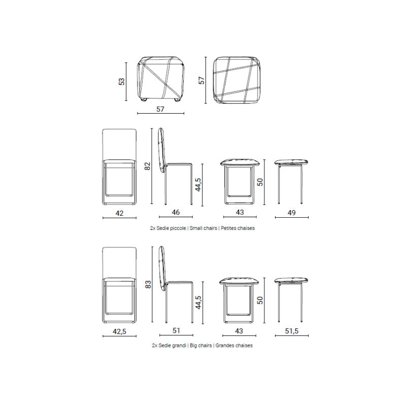 Dimensioni: 57x57 H 53 cm