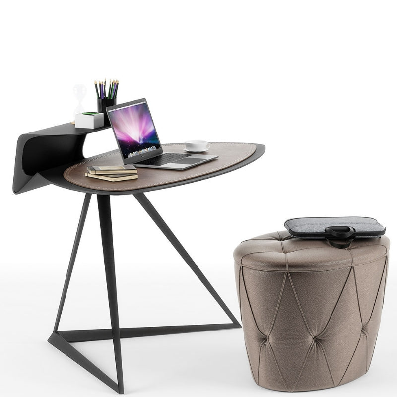 Storm è uno scrittoio di design in acciaio verniciato con pad rivestito in cuoio.