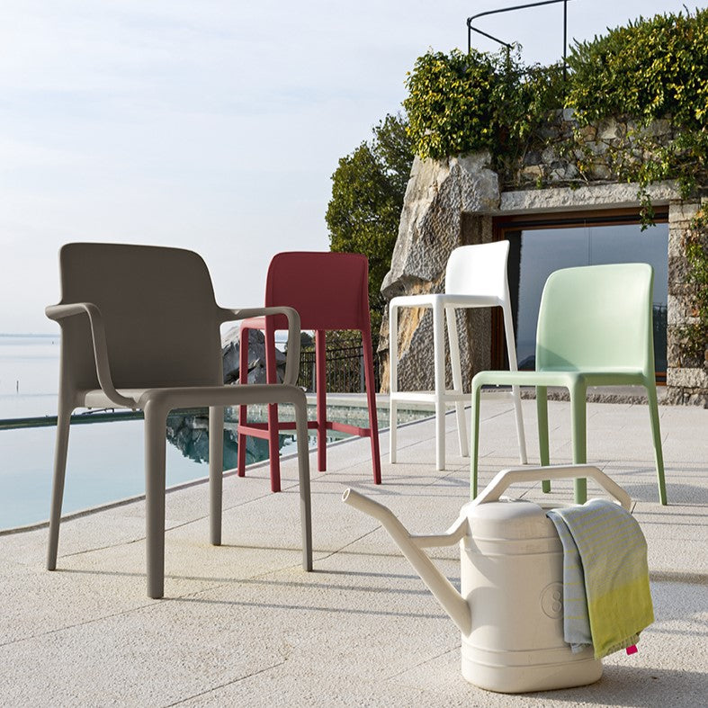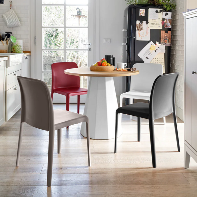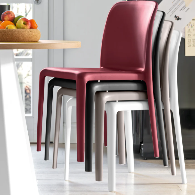 La sedia impilabile Bayo di Connubia è una sedia in monoscocca di polipropilene realizzata con tecnologia Air Moulding, capace di mantenere contemporaneamente leggerezza e robustezza.