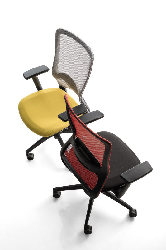 Pop di Luxy è una sedia operativa ergonomica con schienale in nylon con rete di sostegno e supporto lombare regolabile in altezza. Grazie al meccanismo automatico sincronizzato con regolatore di tensione, la seduta si adatta al peso di chi ne fa uso donando confort ad ogni movimento.