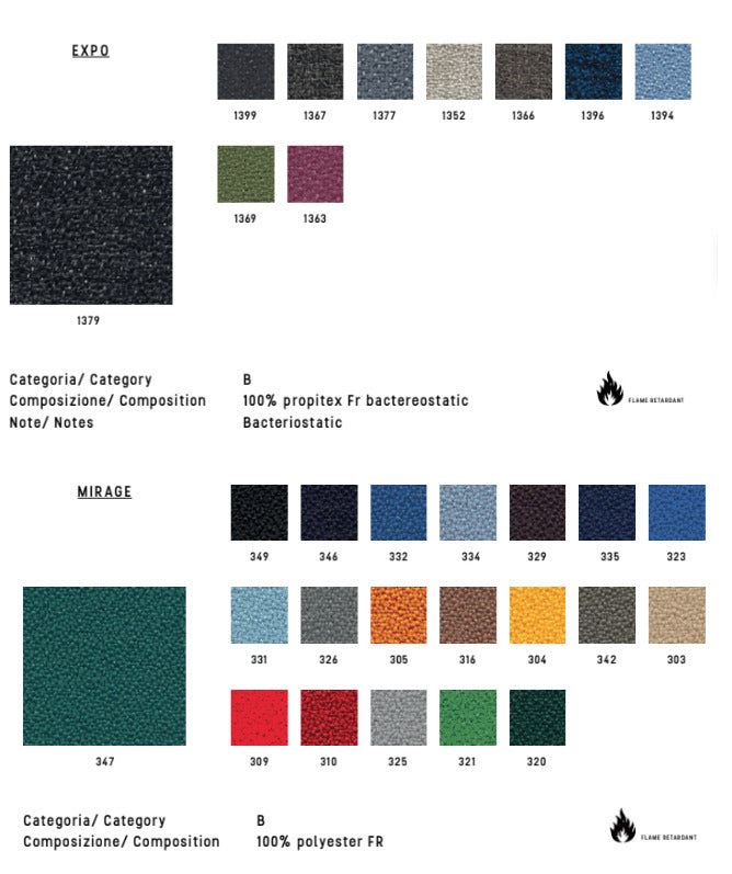 Indicare nelle note dell'ordine il colore scelto sia per la rete dello schienale sia per il rivestimento della seduta.