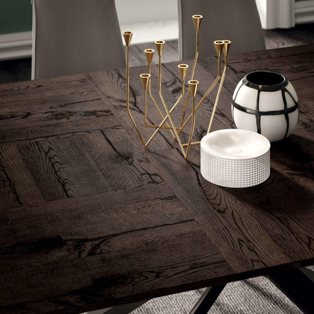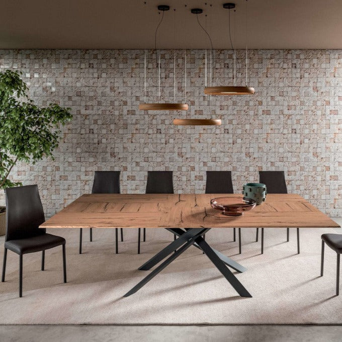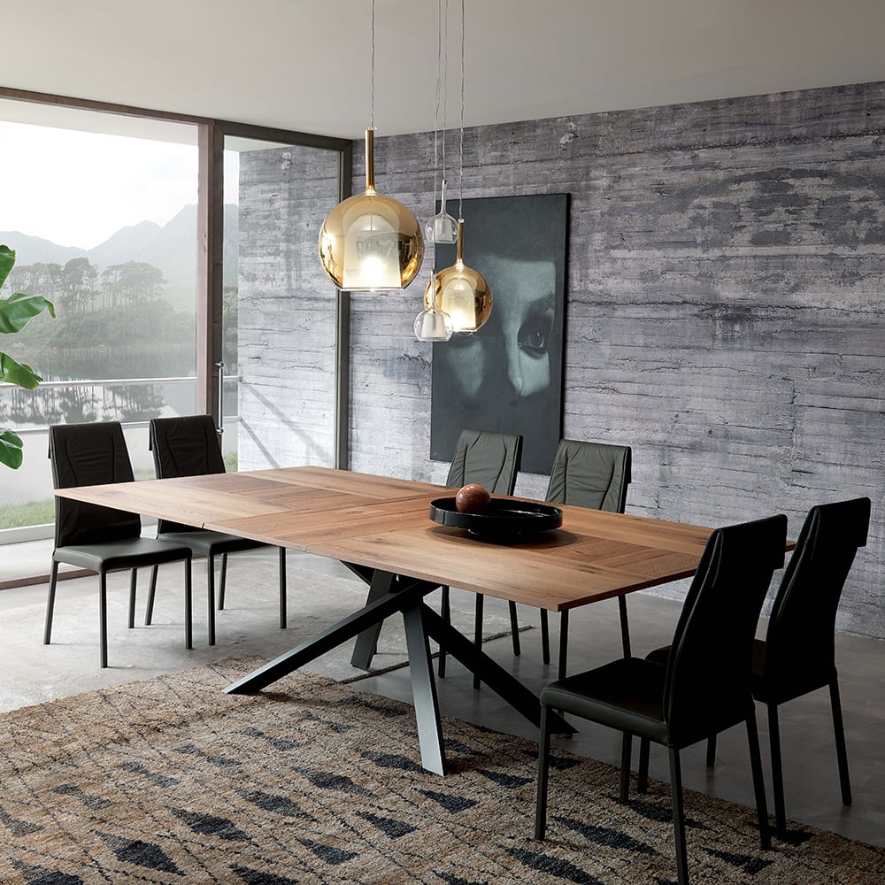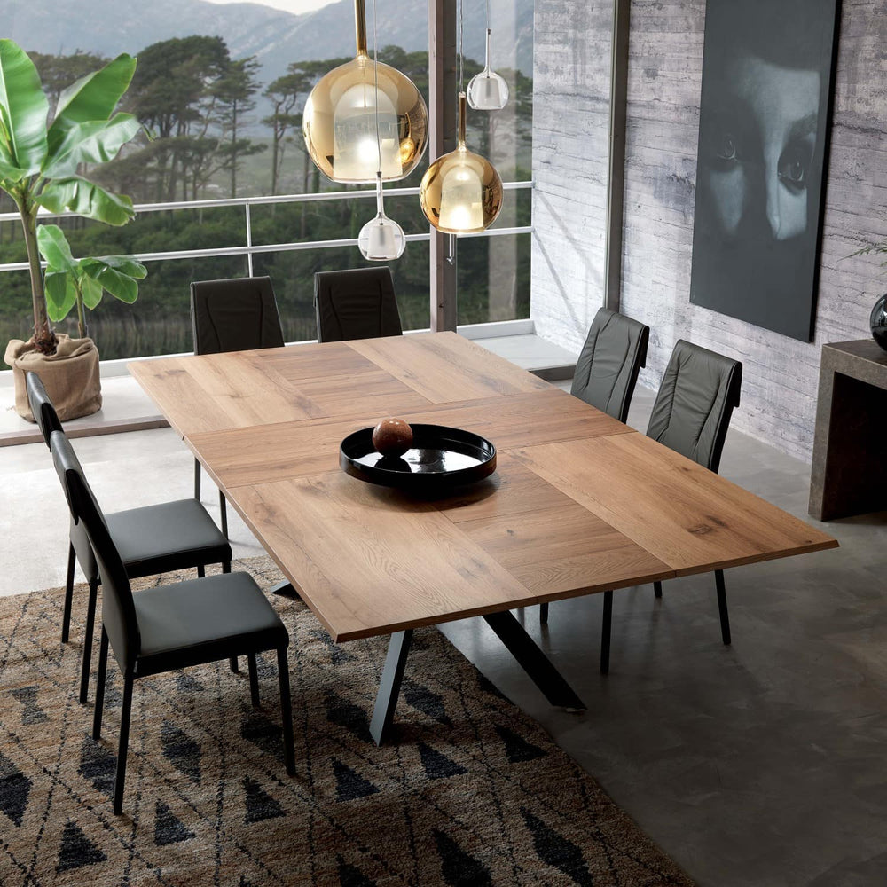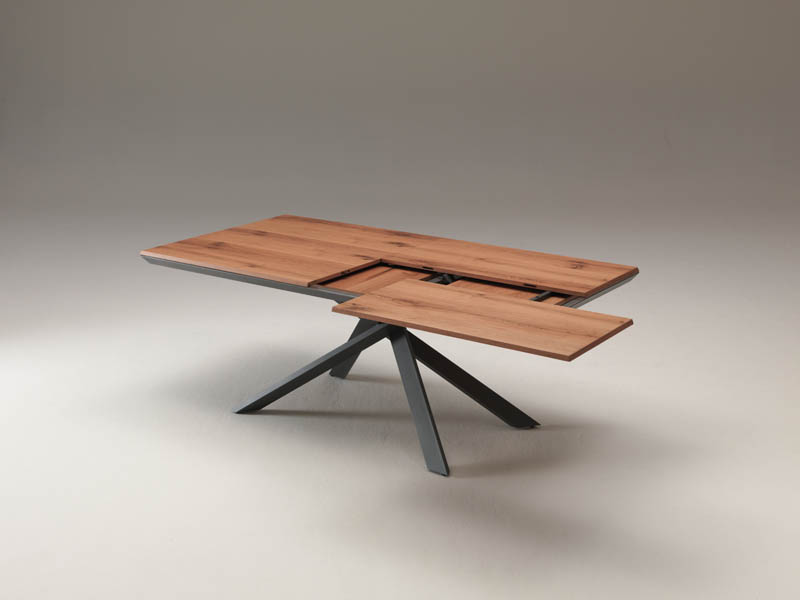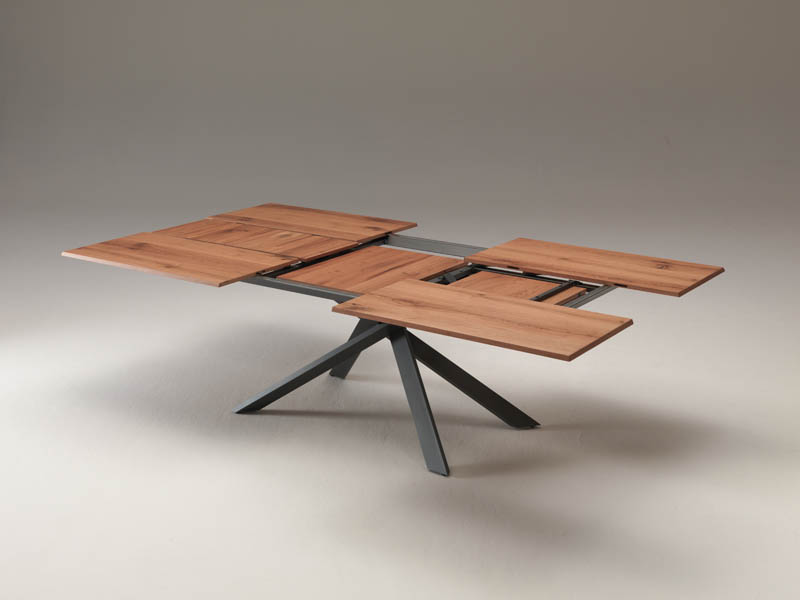 Un'altra particolarità del tavolo allungabile 4x4 è la sua struttura. Le gambe non sono perimetrali, ma sono incrociate in un interessante gioco geometrico.