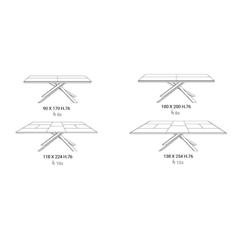 Grazie ad un innovativo scorrimento di guide metalliche, 4x4 non è solo allungabile, ma è un tavolo espandibile. Infatti questo tavolo si allunga e allarga da cm 100x200 a 138x254 cm