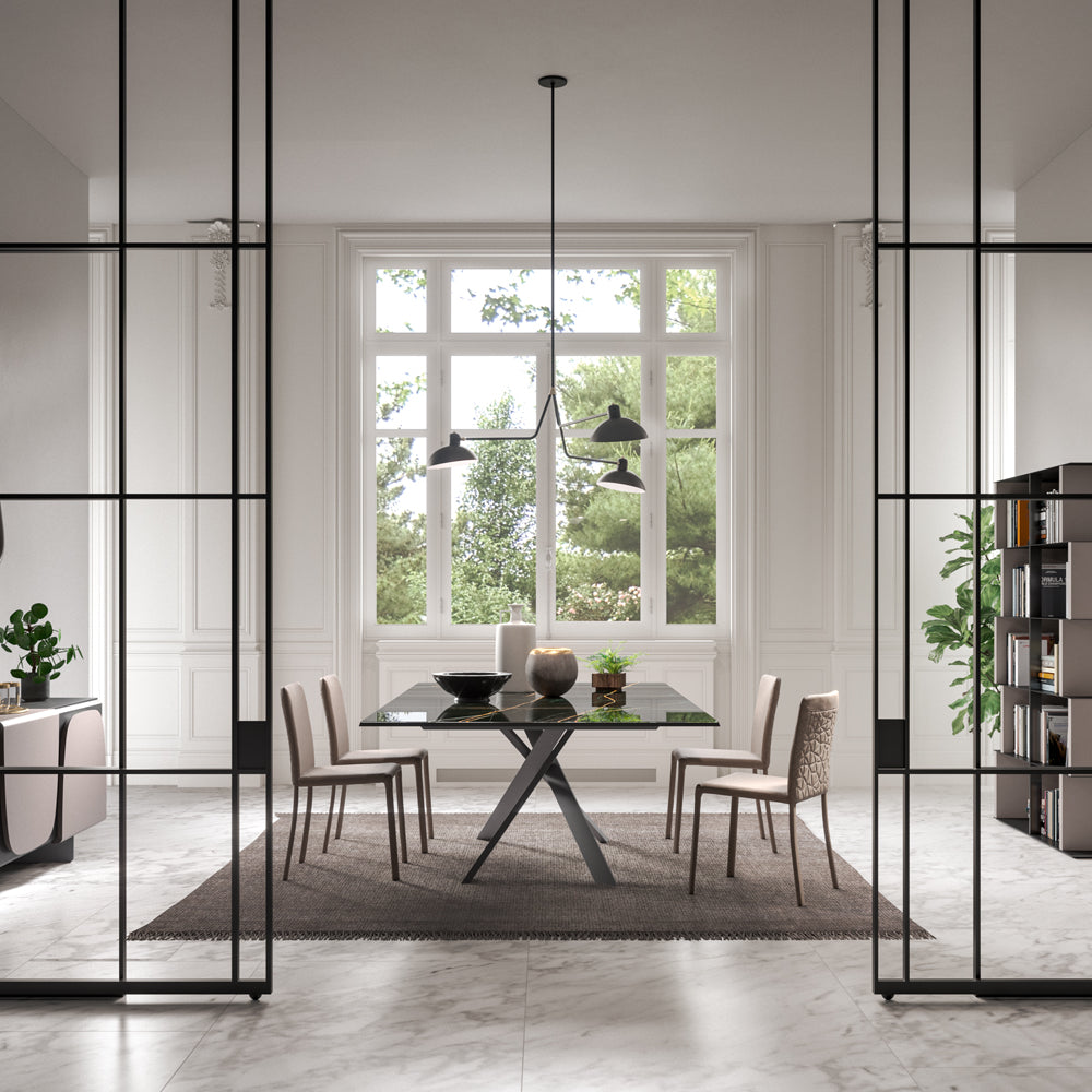 Tavolo allungabile con struttura in metallo e piano in legno, cemento o marble glass | VIENI A VEDERLO IN SHOWROOM