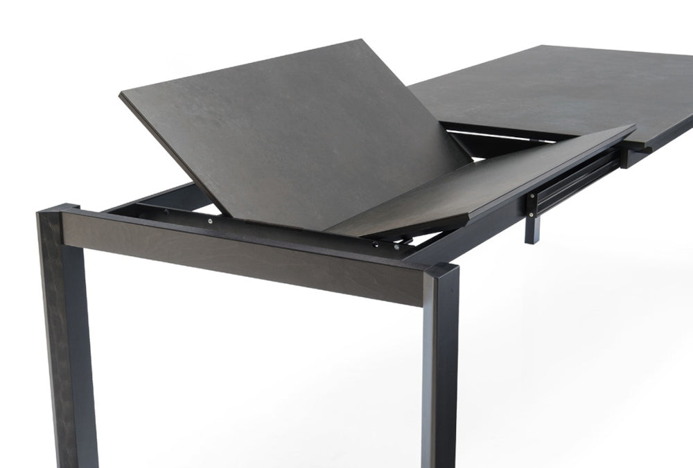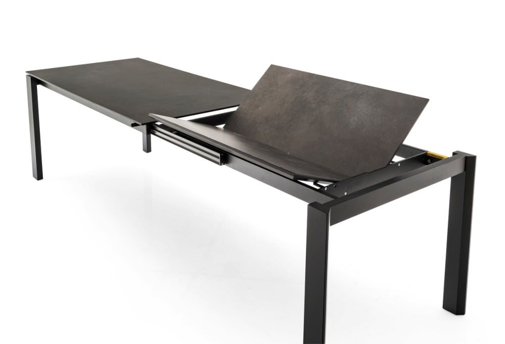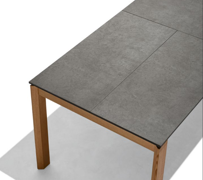 Tavolo allungabile con allunga singola a libro in ceramica.