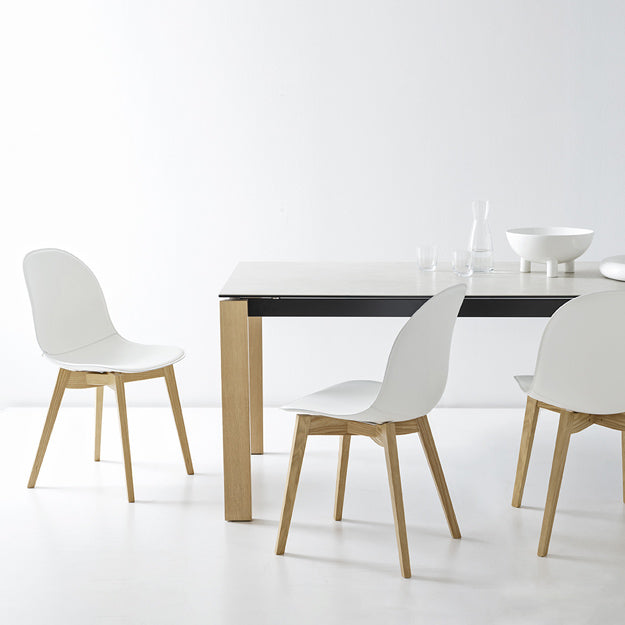 La caratteristica fondamentale di questo tavolo è l'allunga singola a libro posizionata lateralmente, che permette di estenderlo facilmente da 130 a 230 cm e ospitare fino a 10 persone.