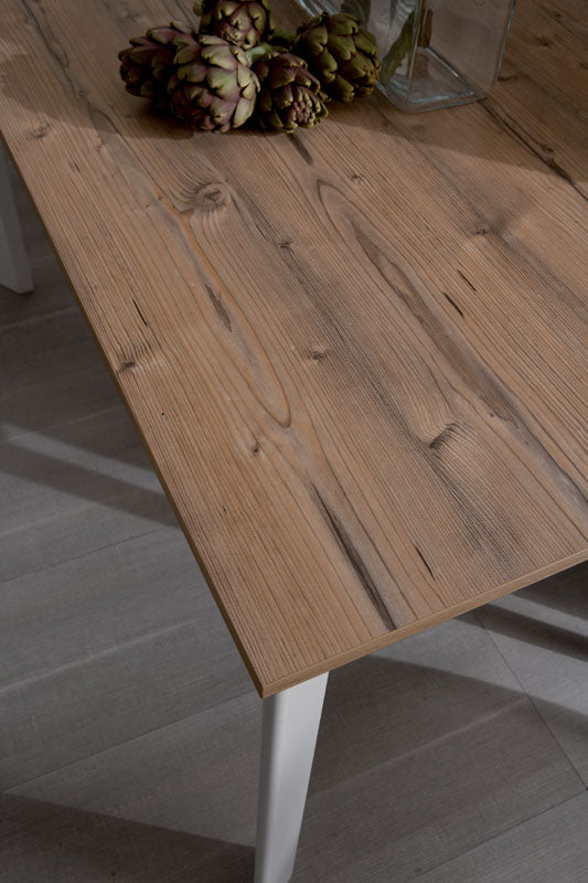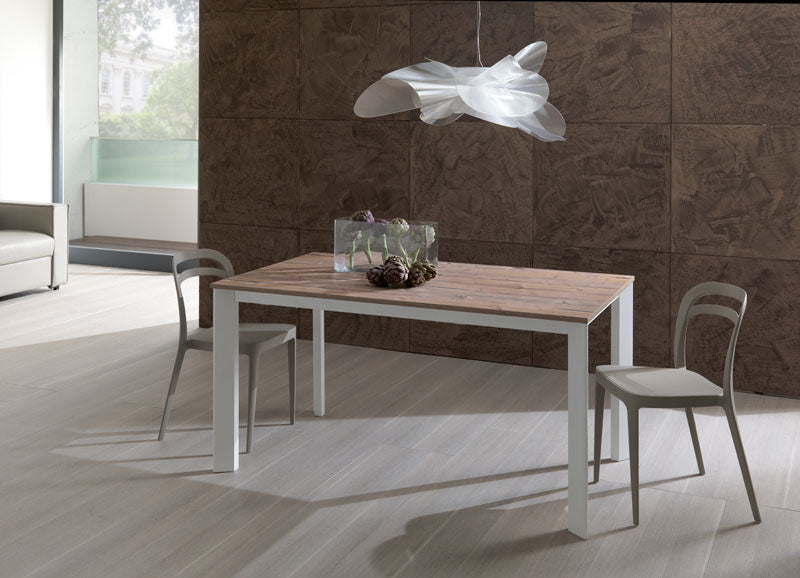 Tavolo da pranzo allungabile con gambe design in metallo e piano in eco legno.