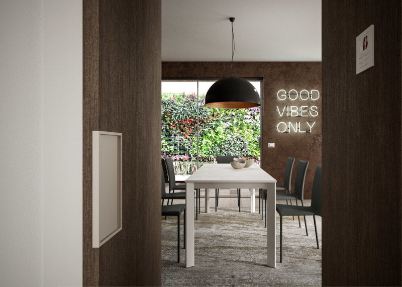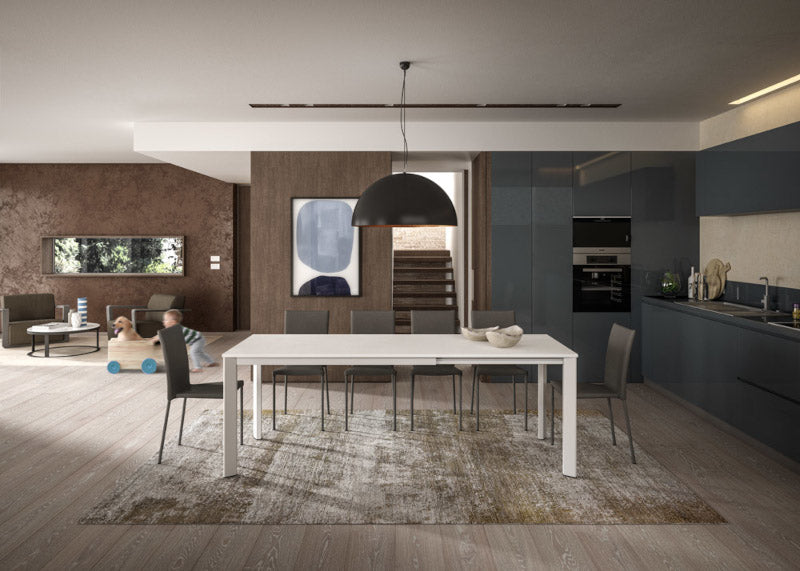 Il tavolo allungabile Mix Expo è un tavolo da pranzo versatile, caratterizzato da un design pulito, leggero, tendente allo stilizzato.