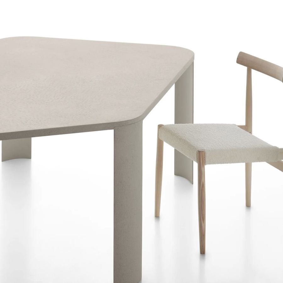 Il tavolo Bonnet di MDF Italia, disponibile da Pozzoli Arredamenti, esprime un perfetto equilibrio tra morbidezza e razionalità, con un design che combina eleganza e funzionalità. I tavoli della famiglia Bonnet, ideati da Marialaura Irvine, si distinguono per l’architettura delicata delle gambe, simili a lame sottili, che svettano verso il piano creando una dinamica tensione visiva. Il piano del tavolo, con forme asimmetriche e audaci, si distingue per una forte personalità che ammorbidisce il rigore geometrico con un "radical whisper", come definito dalla designer.